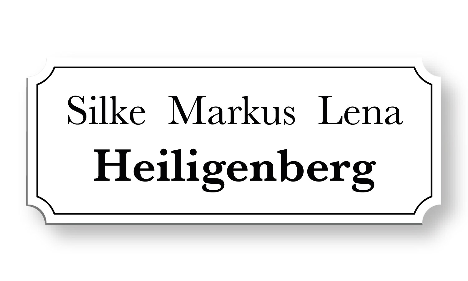 Die Befestigung kann mittels Doppelkleber, Schrauben oder einer rückseitiger Magnetfolie erfolgen. Für die Montage in vorhandene Halterungen einer Klingel- oder Briefkastenanlage wählen Sie bitte bei "Befestigung" den Punkt "ohne Kleber" (Materialstärke 0,8 mm)".