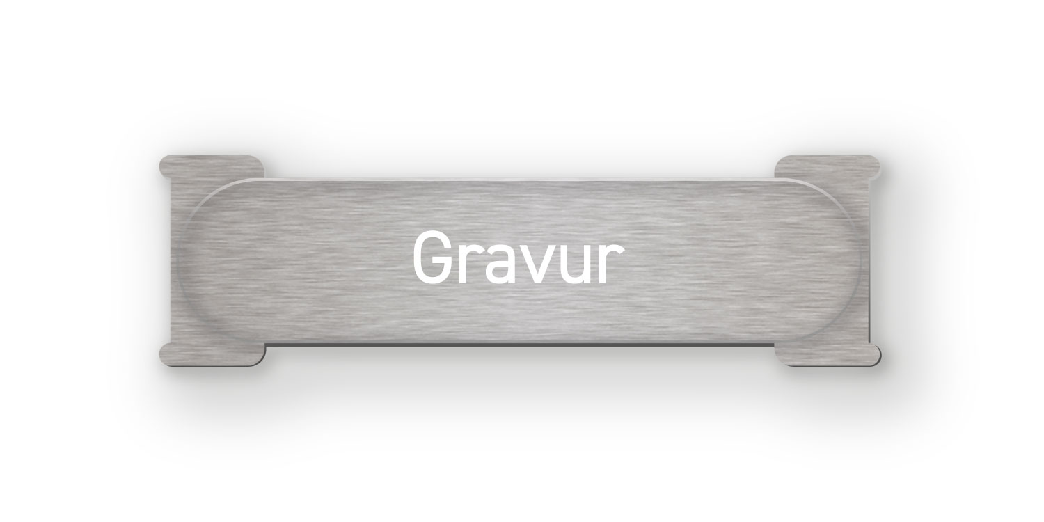 Die Gravur erfolgt mittels Fräser in der Schriftart DIN 1451 und wird zentriert ausgerichtet.