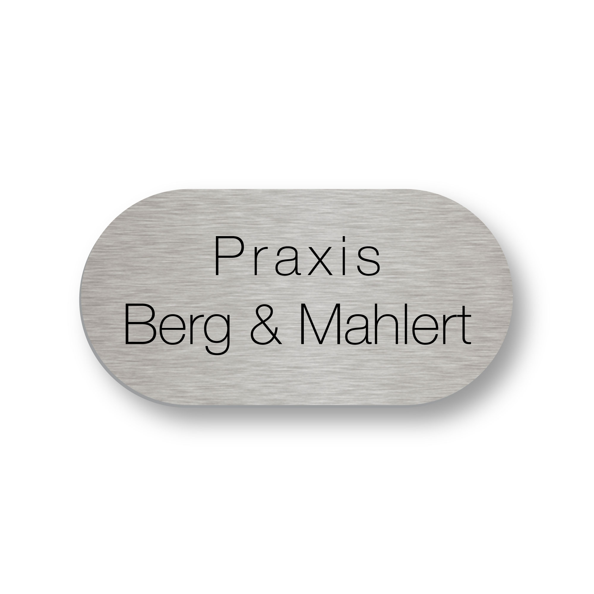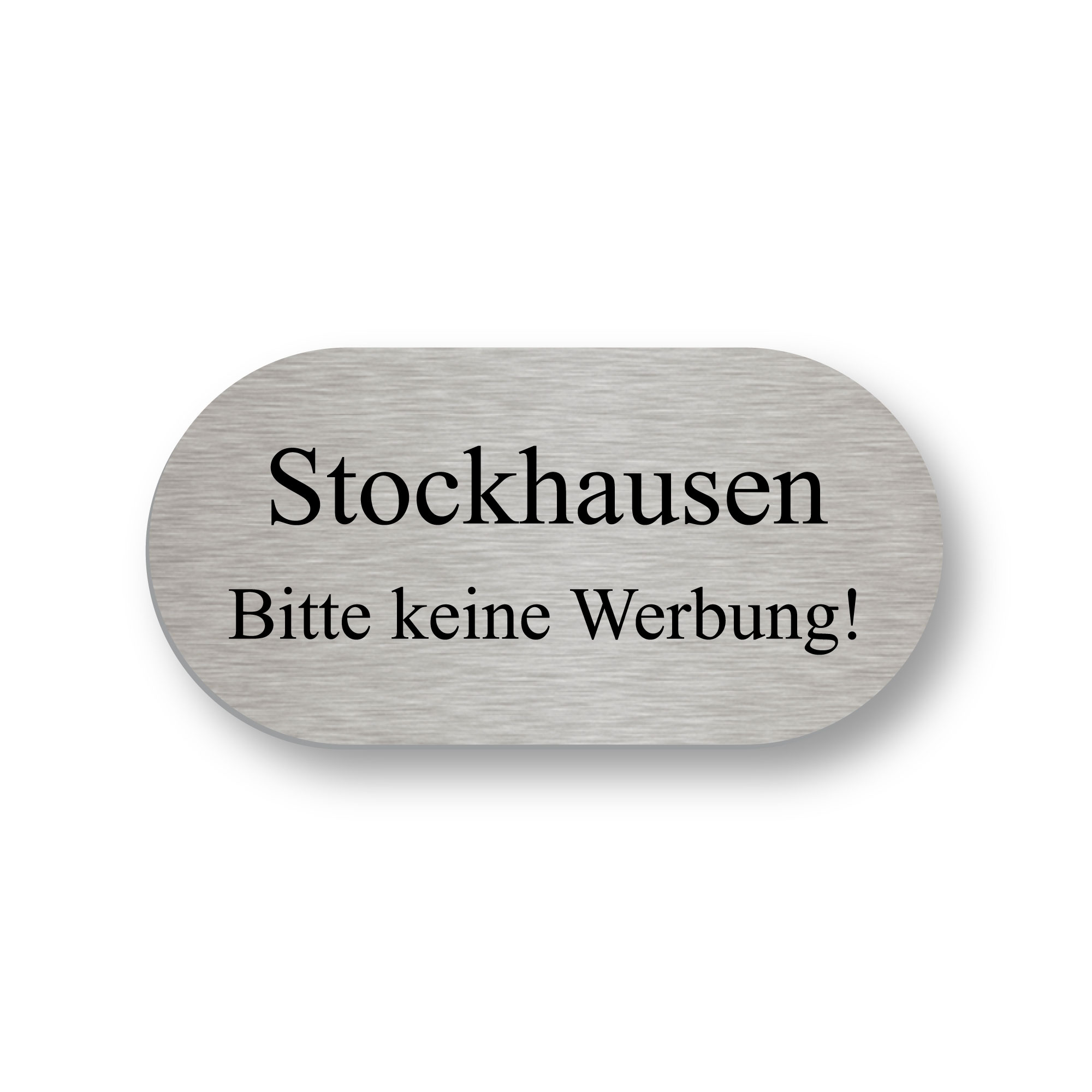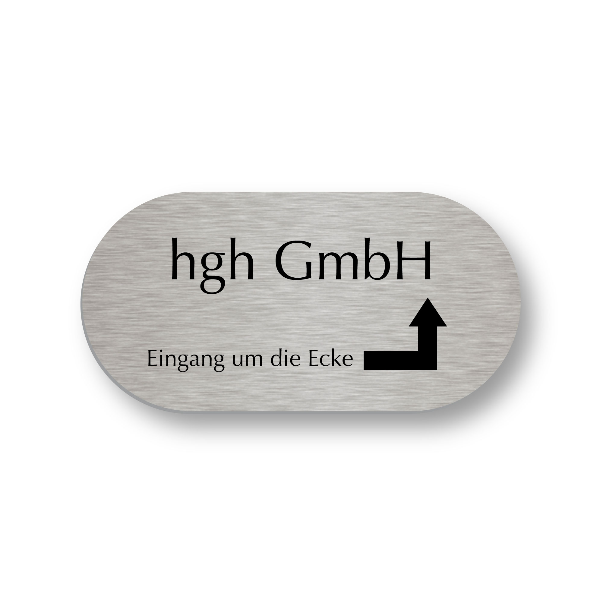 Metallschild aus reinem, matt gebürsten Edelstahl (V2a) inkl. schwarzer, kratzfester und witterungsbeständiger Lasergravur nach Ihrer Vorgabe.